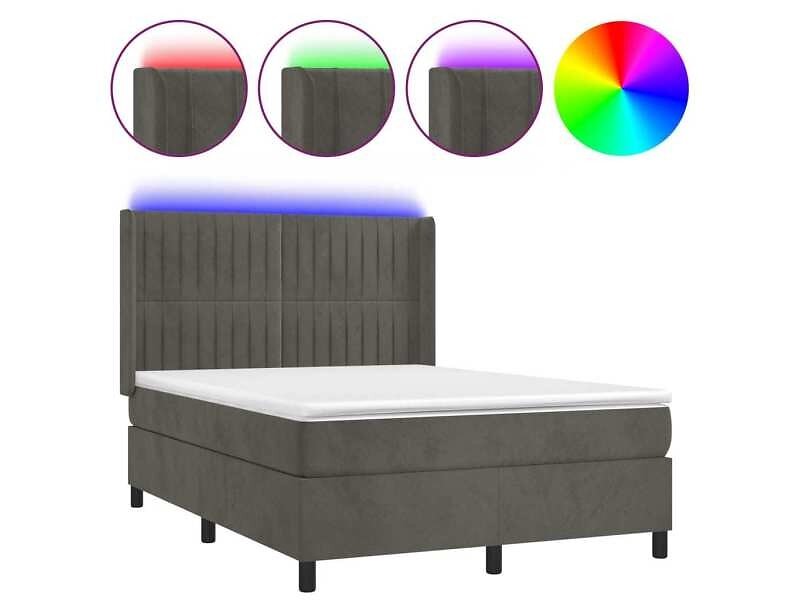 vidaXL Ramsäng med madrass & LED mörkgrå 140x200 cm sammet