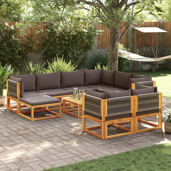 vidaXL Soffgrupp för trädgården med dynor 10 delar massivt akaciaträ 3278836