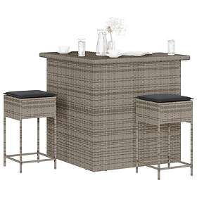 vidaXL Bargrupp för trädgården med dynor 3 delar grå konstrotting 3261504