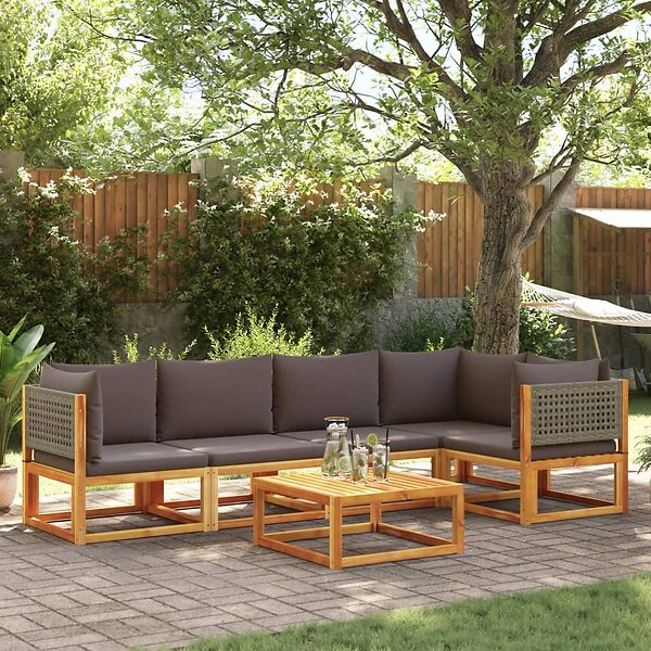 vidaXL Loungegrupp för trädgården med dynor 6 delar massivt akaciaträ 3278898
