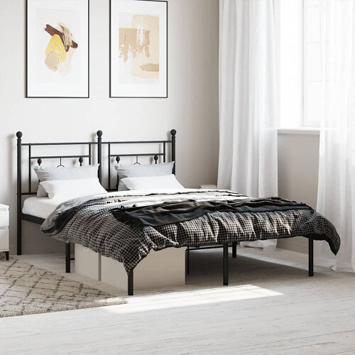 Sängram med huvudgavel metall svart 140x190 cm
