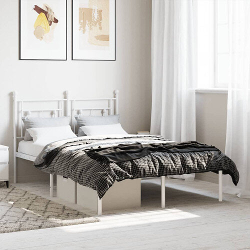 Sängram med huvudgavel metall vit 120x190 cm