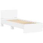 Sängram med huvudgavel och LEDs vit 90x200 cm