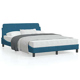 Sängram med huvudgavel blå 140x200 cm sammet
