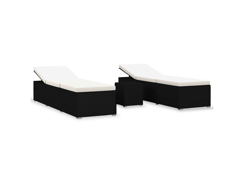 Solsängar och sidobord 3 delar konstrotting svart