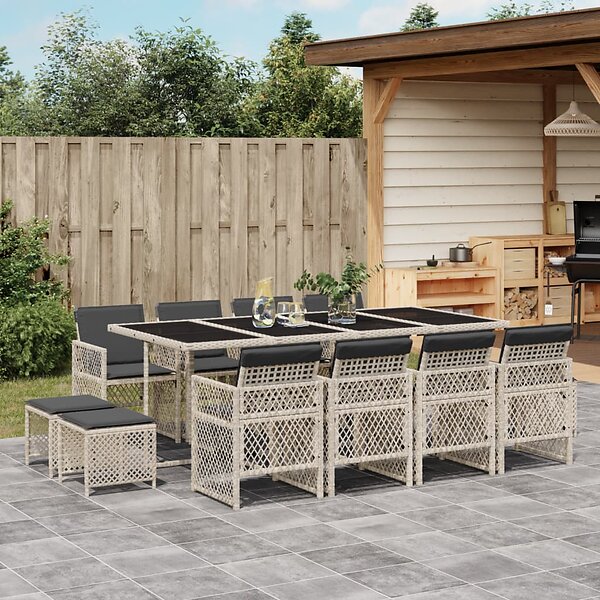 vidaXL Matgrupp för trädgården med dynor 13 delar ljusgrå konstrotting 3210803