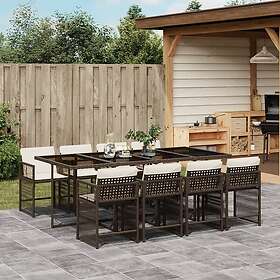 vidaXL Matgrupp för trädgården med dynor 9 delar konstrotting brun 3211641