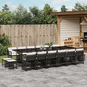 vidaXL Matgrupp för trädgården med dynor 17 delar konstrotting svart 3211722