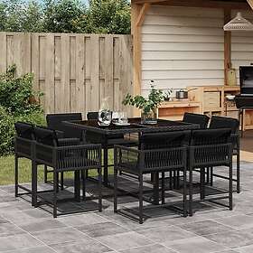 vidaXL Matgrupp för trädgården med dynor 9 delar svart konstrottning 3211555