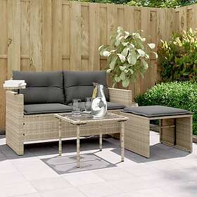 vidaXL Trädgårdssoffset med dynor 3 delar konstrotting ljusgrå 365463