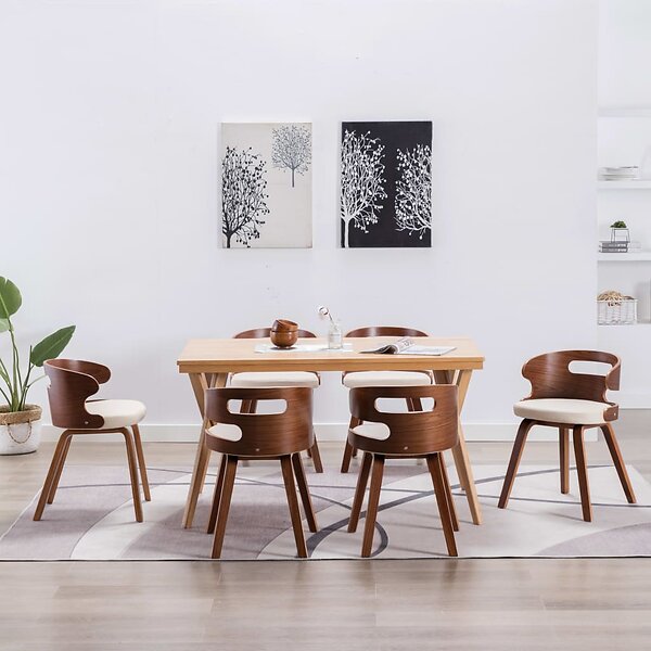 vidaXL Matstolar 6 st gräddvit böjträ och konstläder 278849