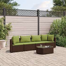 vidaXL Loungegrupp för trädgården med dynor 5 delar brun konstrotting 3308374