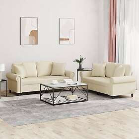 vidaXL Soffgrupp med kuddar 2 delar gräddvit konstläder 3202161