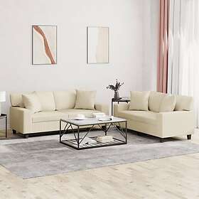 vidaXL Soffgrupp med kuddar 2 delar gräddvit konstläder 3201925