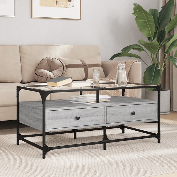 vidaXL Soffbord med glasskiva grå sonoma 98,5x50x45 cm stål 846047