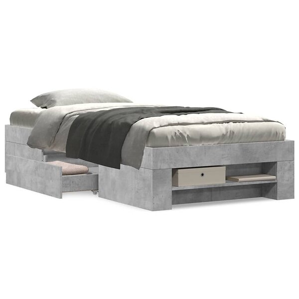 vidaXL Sängram betonggrå 100x200 cm konstruerad trä 3295488