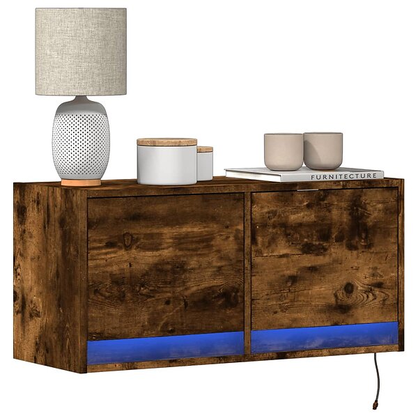vidaXL Väggmonterad tv-bänk LED rökfärgad ek 80x31x35 cm 852359