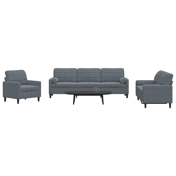 vidaXL Soffgrupp med dynor och bolster 3 delar mörkgrå sammet 3278452