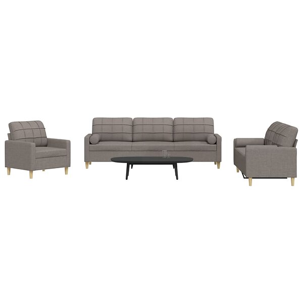vidaXL Soffgrupp med kuddar 3 delar taupe tyg 3278310