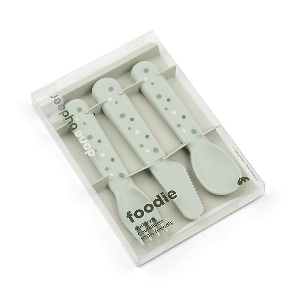 Done By Deer Foodie cutlery set Happy dots Green