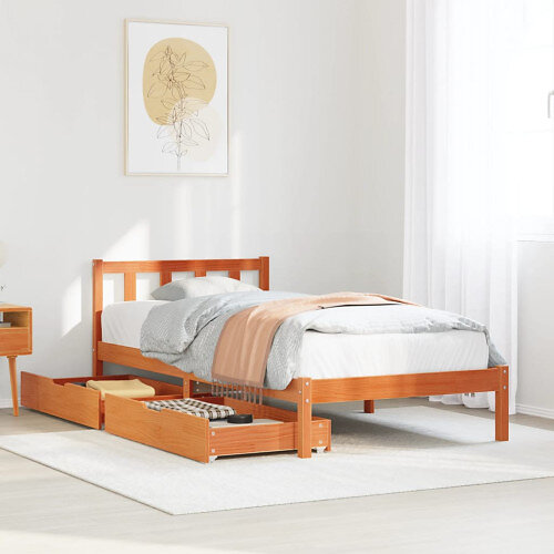 vidaXL Sängram utan madrass vaxad brun 90x200 cm massiv furu