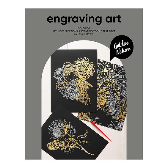 Panduro Hobby Engraving art Golden Nature – scratch art med 3 st. A4-ark, guldiga naturmotiv