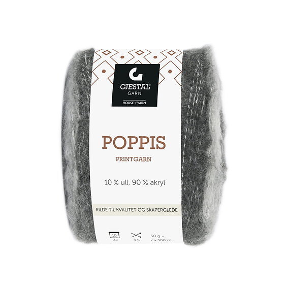 House of Yarn Gjestal Garn Poppis printgarn 50g grå – graderat garn