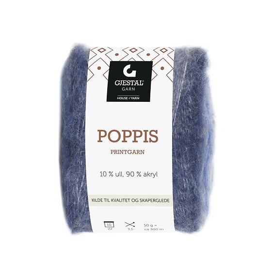 House of Yarn Gjestal Garn Poppis printgarn 50g denim – graderat garn