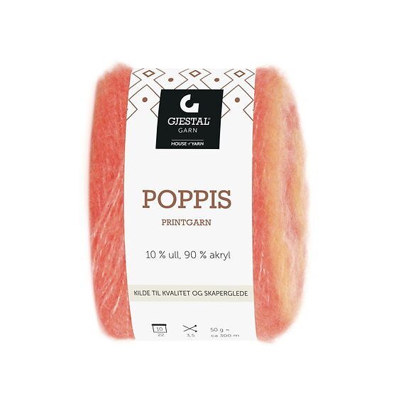 House of Yarn Gjestal Garn Poppis printgarn 50g laxrosa – graderat garn