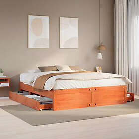vidaXL Sängram utan madrass med lådor vaxbrun 180x200 cm massiv furu