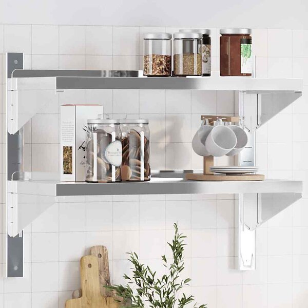 vidaXL Vägghyllor 2 nivåer 75x30x60 cm silver rostfritt stål