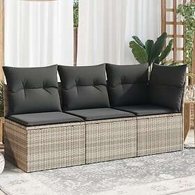 vidaXL Trädgårdssoffa med dynor 3-sits ljusgrå konstrotting