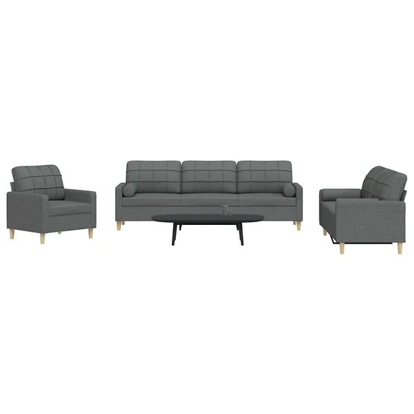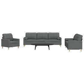 vidaXL Soffgrupp med kuddar 3 delar mörkgrå tyg