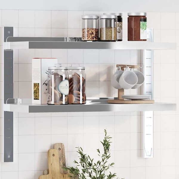 vidaXL Vägghyllor 2 nivåer 75x23,5x60 cm silver rostfritt stål
