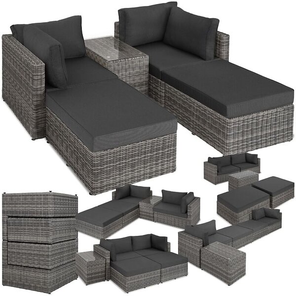 TecTake Loungeset i konstrotting San Domino ljusgrå/mörkgrå