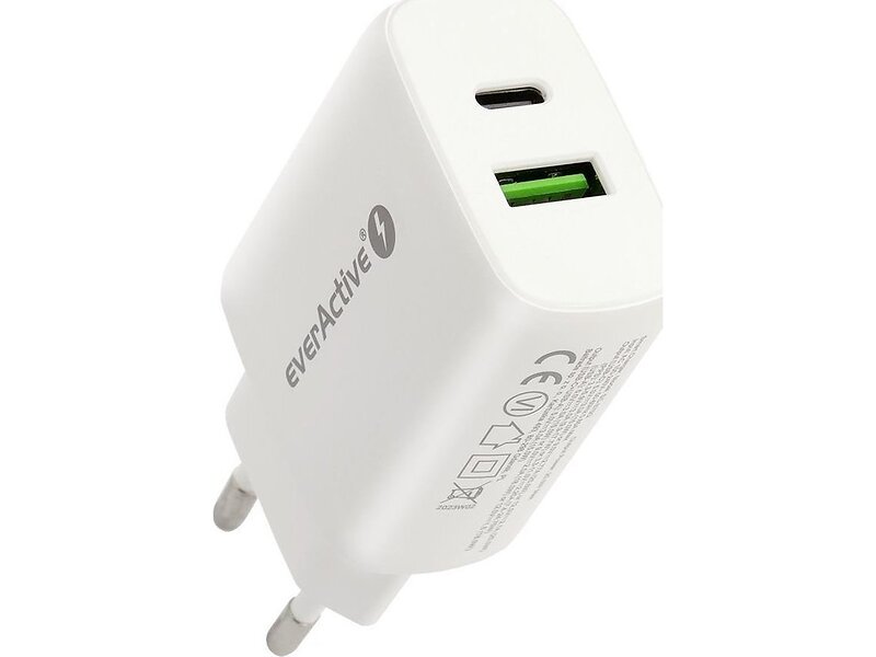EverActive SC-370Q 25W vægoplader - USB-A, USB-C - Hvid