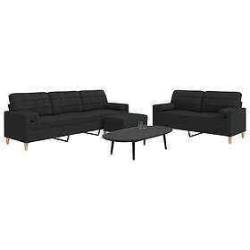 vidaXL Soffgrupp med pall&kuddar 3 delar svart tyg