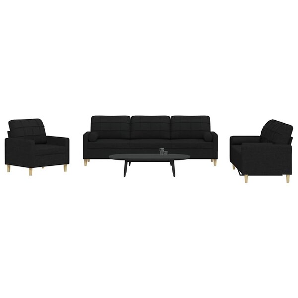 vidaXL Soffgrupp med kuddar 3 delar svart tyg