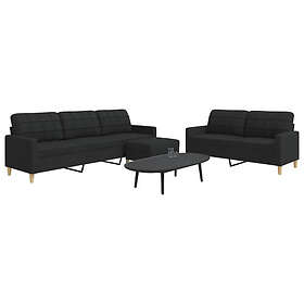 vidaXL Soffgrupp med fotpall 3 delar svart tyg