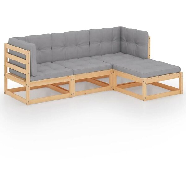 vidaXL Loungegrupp med dynor 4 delar massiv furu