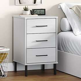 vidaXL Sängbord med metallben OSLO vit massiv furu