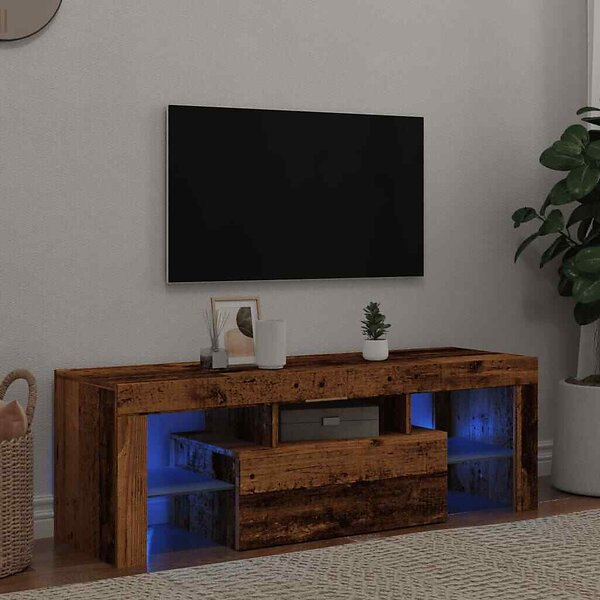 vidaXL TV-bänk med LED-lampor åldrat trä 120x36,5x40cm konstruerat trä