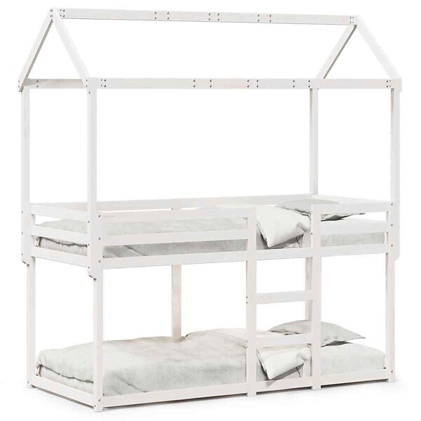 vidaXL Våningssäng med tak vit 75x190 cm massiv furu