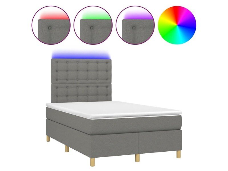 vidaXL Ramsäng med madrass & LED mörkgrå 120x190 cm tyg