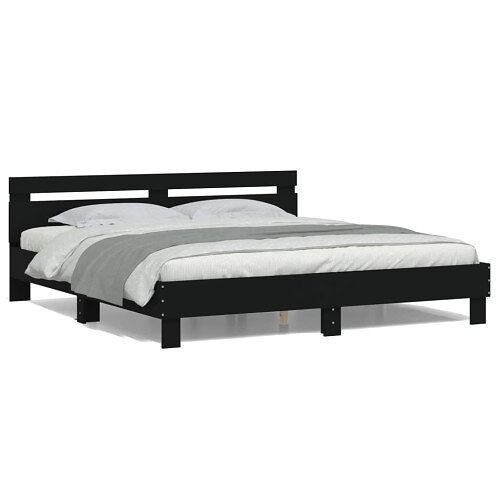 vidaXL Sängram med huvudgavel och LED svart 160x200 cm