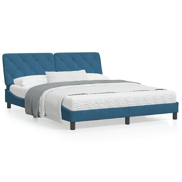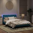vidaXL Sängram med LED-belysning blå 160x200 cm sammet