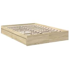 vidaXL Sengeramme sonoma eg 150x200 cm konstrueret træ med skuffer