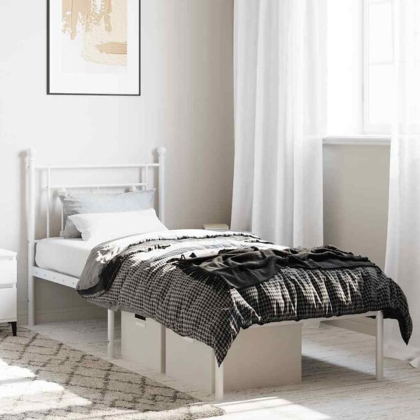 vidaXL Sängram med huvudgavel metall vit 80x200 cm