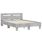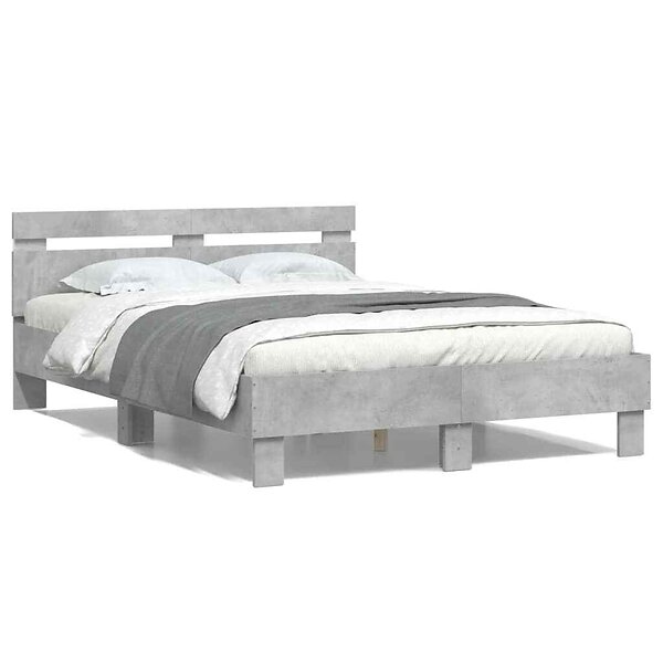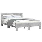 vidaXL Sängram med huvudgavel och LED betonggrå 135x190 cm