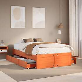 vidaXL Sängram utan madrass med lådor vaxbrun 120x190 cm massiv furu